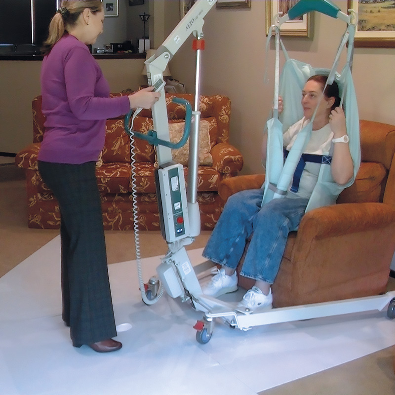 Hard Plastic Flooring is preferable to flexible plastic matting, as some matting is unsuitable for plush or high pile carpet where wheels can sink into the soft plastic surface. The Flooring can be placed wherever a hoist or wheelchair needs to move and also helps prevent carpet from being damaged by wheels.